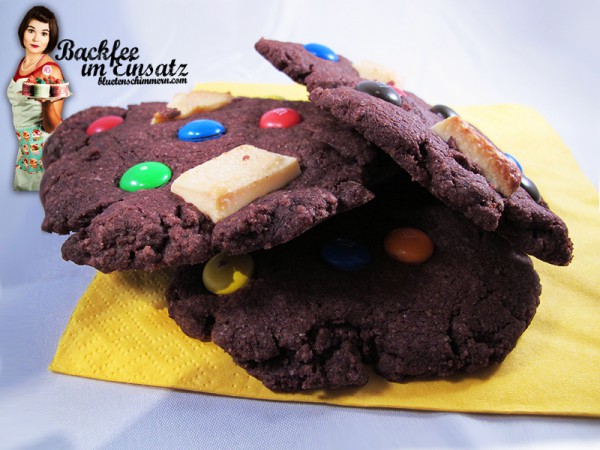 Für alle Krümelmonster unter euch habe ich heute - SCHOKOCOOKIES. Und nicht nur mit einmal Schokolade, nein, auch nicht mit zwei Mal, sondern mit DREIMAL Schokolade. Triple Choc!