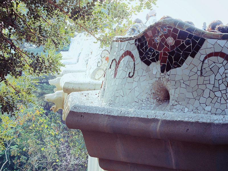 Auch der Park Güell gehört zu meinen Top 7 Sehenswürdigkeiten. Der Park ist ebenfalls von Antonio Gaudí gestaltet worden. Leider ist es dort zu jeder Uhrzeit voll von Touristen, sodass Fotos ohne weitere Menschen kaum möglich sind. Um die Gebäude im Park richtig sehen zu können, muss man Eintritt zahlen, doch finde ich, dass es sich absolut lohnt. Ich gehe immer wieder gerne durch den Park spazieren, denn die Gestaltung ist wunderbar. So schön bunt, verspielt und es ist jedes Mal aufs Neue toll, sich die verschiedenen Bauten, Gestalten und Wege anzuschauen.
