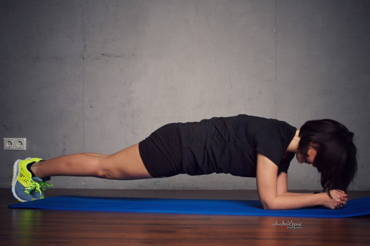 Die Plank ist auch Teil meines Bauch- und Rückenworkouts. Ansonsten gibt es bei mir Seitstütz, Käfercrunches und auf dem Rücken liegend einmal die Arme heben und einmal die angewinkelten Beine.